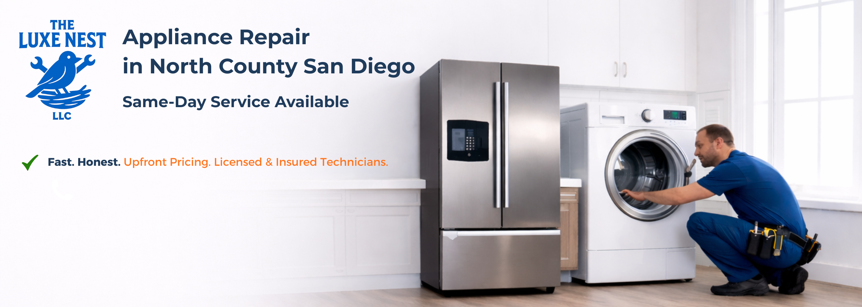 Great experience from start to finish. Our oven stopped heating right before the weekend and they were able to come out the same day. The technician diagnosed the issue quickly and had the part with him. Everything works perfectly now. Highly recommend if you need appliance repair in North County.